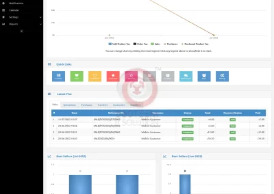 With Overview & Best Seller Chart, Latest Five (sales, quotations. purchases, transfers, customers & suppliers)